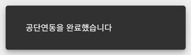 ② 동기화는 정보량에 따라 2-3분 가량 걸릴 수 있으며, 동기화 버튼 하단에 아래 영상처럼 진행 중 표시가 뜨며, 동기화가 완료되었을 시 ‘공단연동을 완료했습니다.’ 라는 팝업으로 안내를 드립니다.