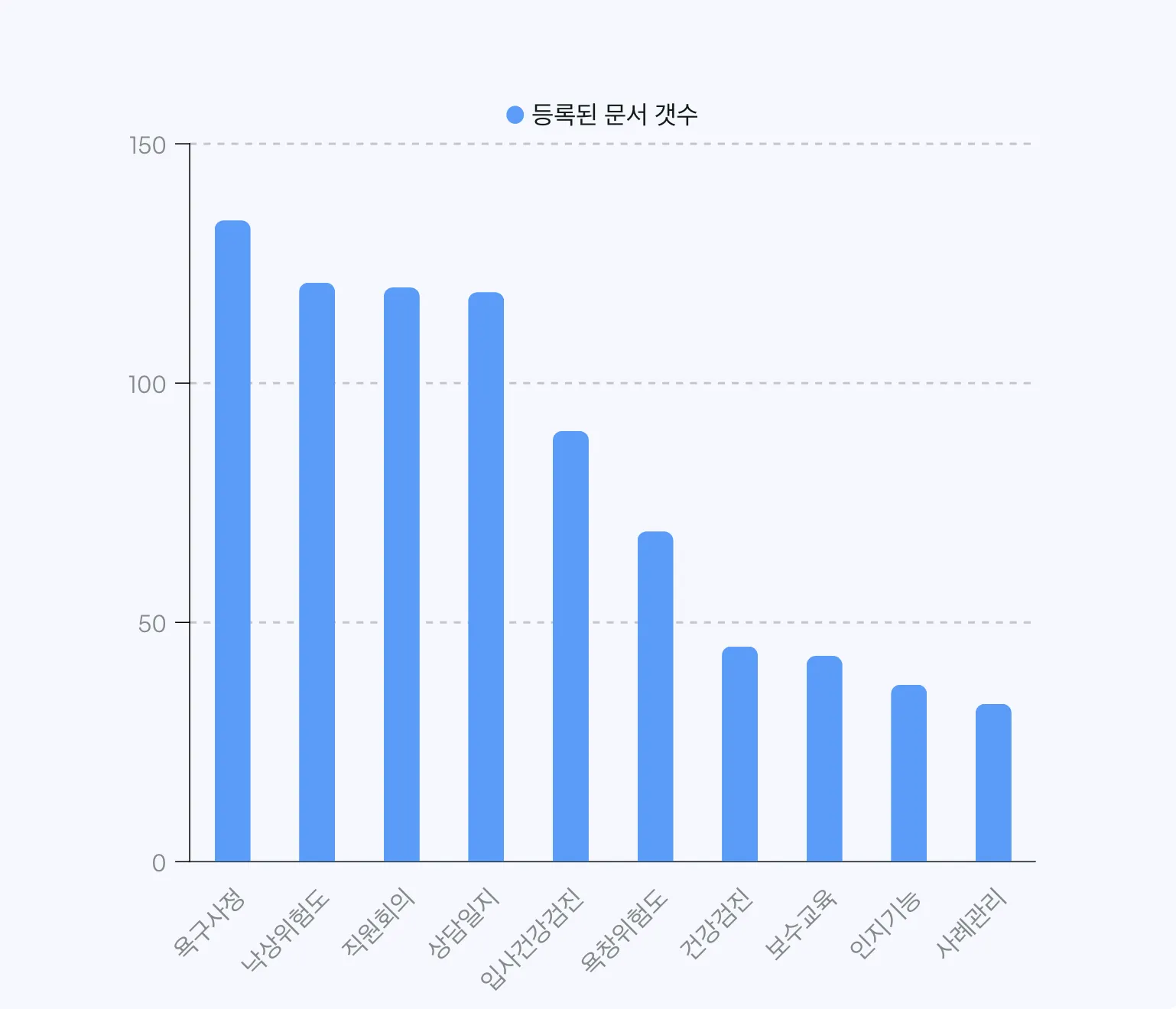 3주 동안 가장 많이 등록된 문서는 ‘욕구사정’ 이었어요.
