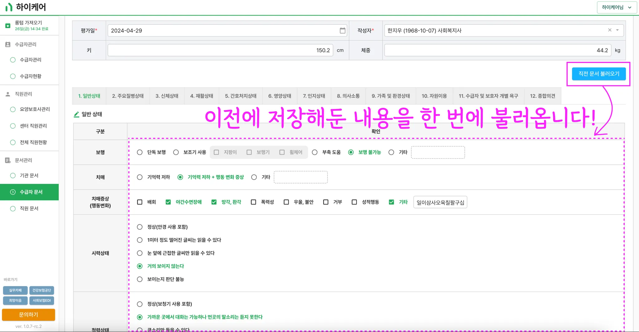 이전 내용을 불러온 뒤, 변경된 욕구사정 내용만 수정하고 저장할 수 있으니, 처음부터 작성하는 것보다 훨씬 편하겠죠?