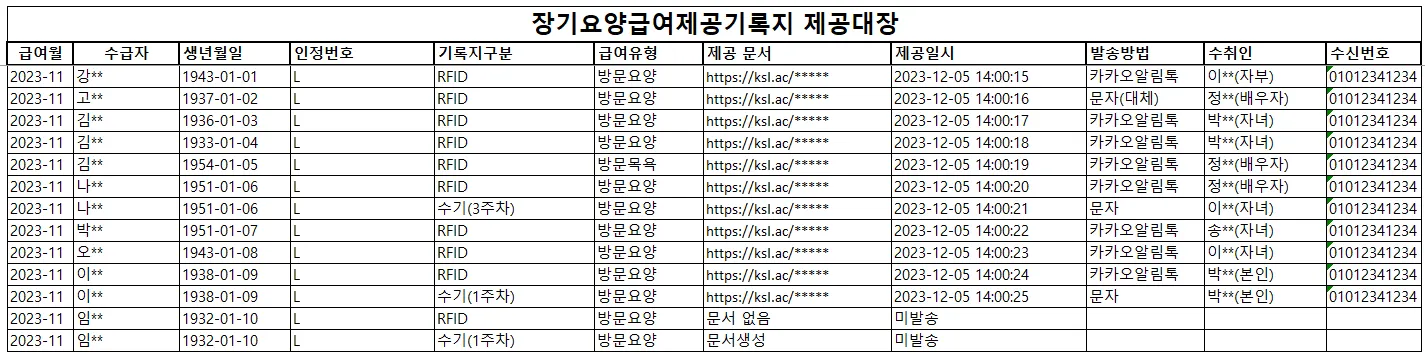 장기요양급여제공기록지 제공대장을 다운로드 하여 확인하여 주실 수 있습니다!