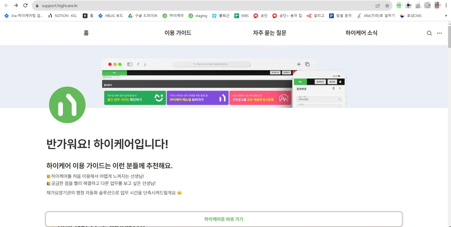 하이케어 이용하시면서 궁금한 사항이나 어려움이 있을 때 접속하셔서 이용해 보세요!