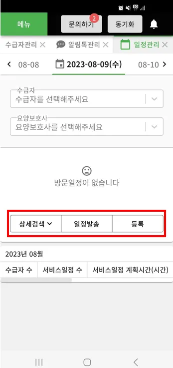 하이케어를 통해 일정 변경, 추가 등록, 삭제를 진행하실 때