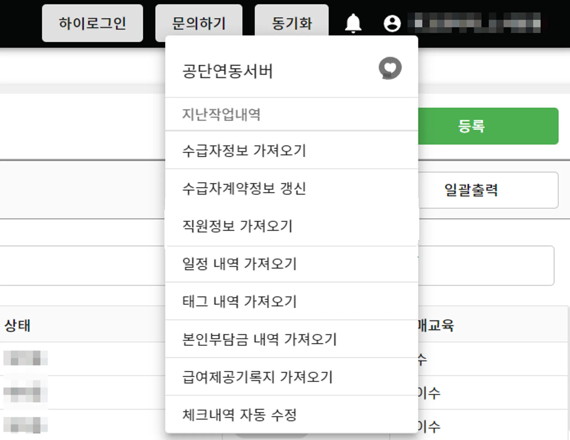 직원정보 가져오기 : 사회복지사님, 요양보호사님 정보를 갖고 와서 각각 직원관리 메뉴와 요양보호사관리 메뉴에 동기화됩니다.
