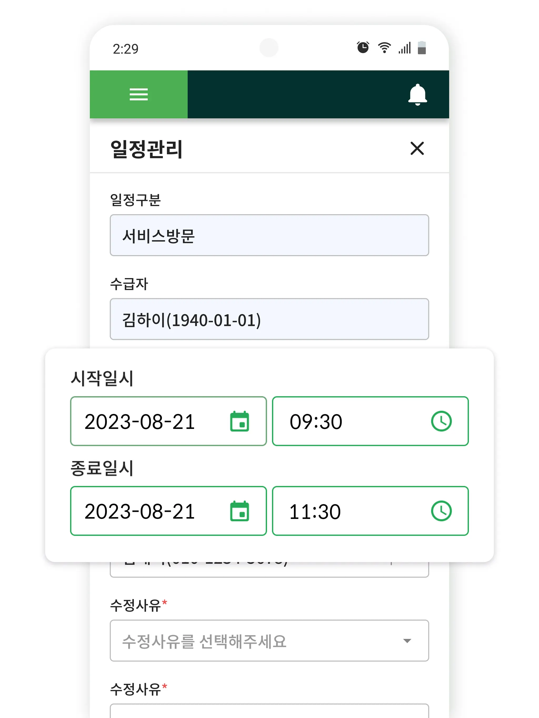 이제, 하이케어 앱에서 일정을 언제 어디에서든 더 편리하고 쉽게 확인&수정할 수 있어요