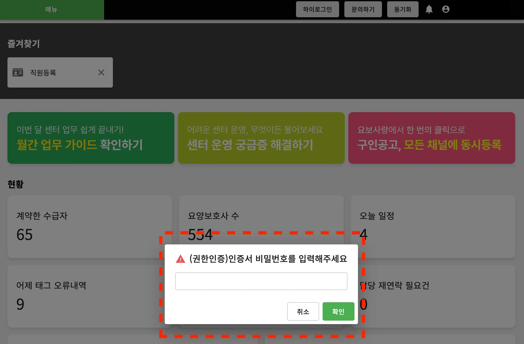하이로그인은 PC에서만 사용 가능하며, 하이케어 PC로 접속해 최초 1회 크롬 확장프로그램을 설치하시면 바로 사용할 수 있어요. 설치는 30초 정도 소요됩니다.