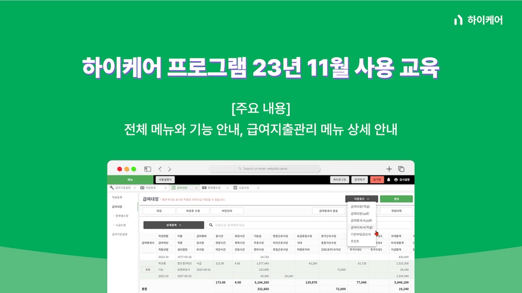 하이케어를 200% 활용해 원활한 행정 업무를 하실 수 있도록, 다양한 온라인 교육을 진행합니다.